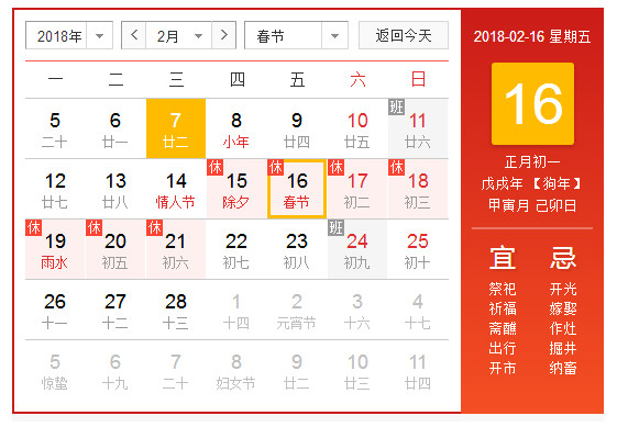 春節放假時間:2018/02/11(星期日)--2018/02/21(星期三)。